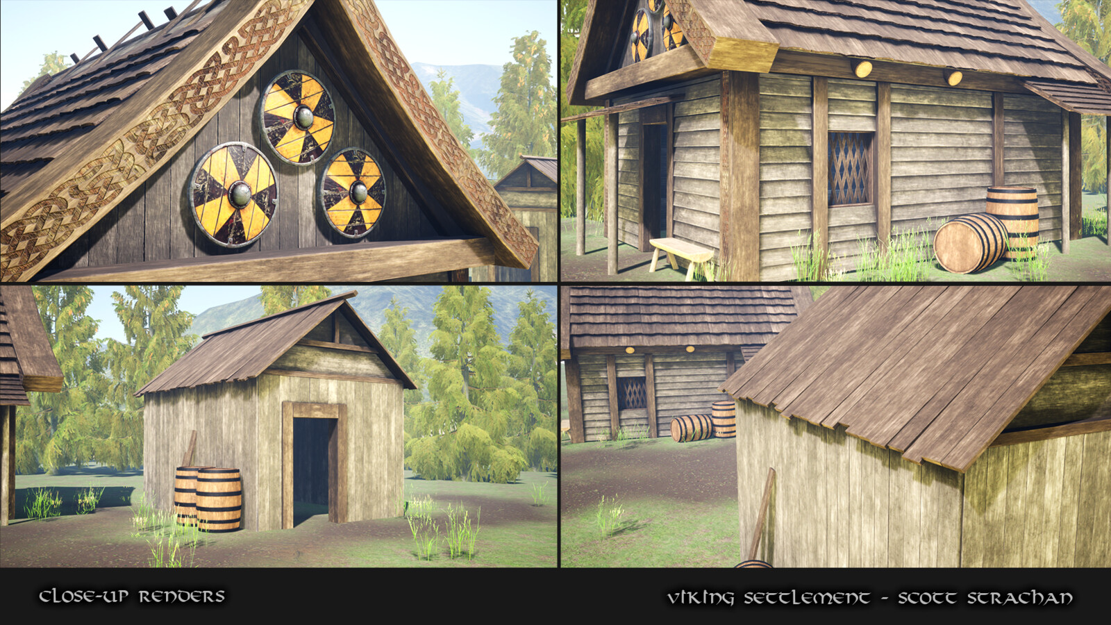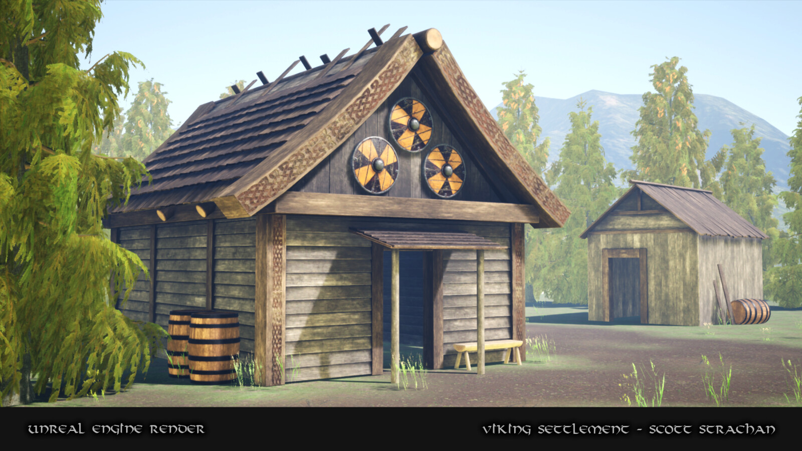 A personal project of a Viking Settlement rendered in real-time inside Unreal Engine 4. The project was inspired by the Assassins Creed Valhalla game and all assets inside the scene are my own, with the exception of the trees, foliage and mountains - which are free assets from the UE4 store.